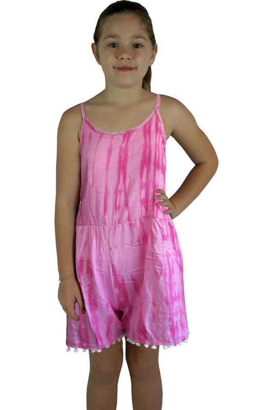 Girls PomPom Jumpsuit - Streaky Tie Dye