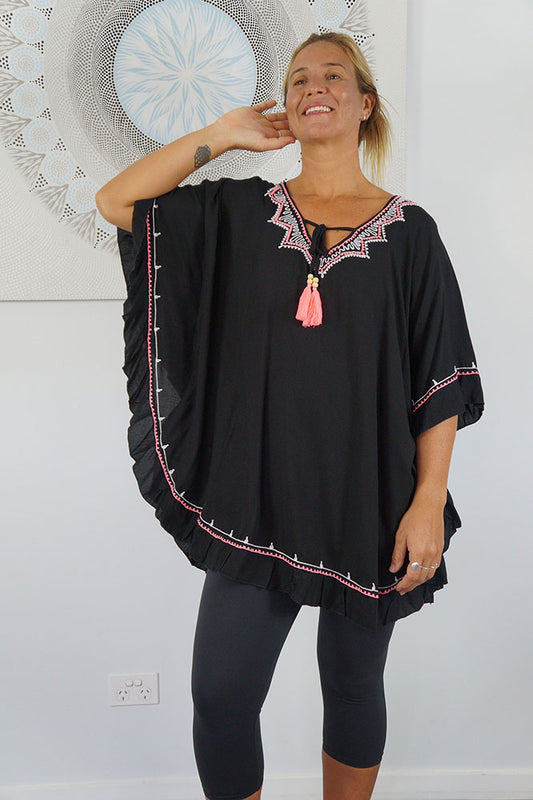 Embroidered Batwing Top