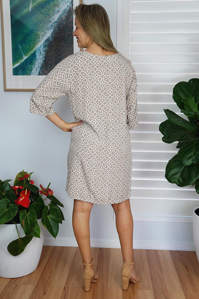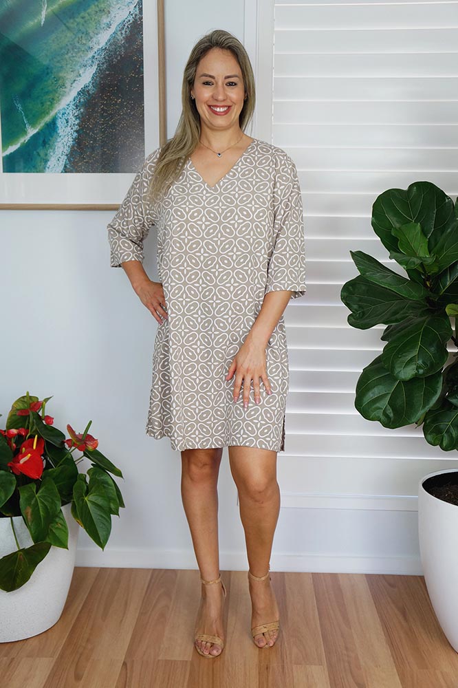 Made from rayon, this casual 3/4 sleeve tunic is great for around the pool or at the beach. Available in sizes 8-12, 14-18
