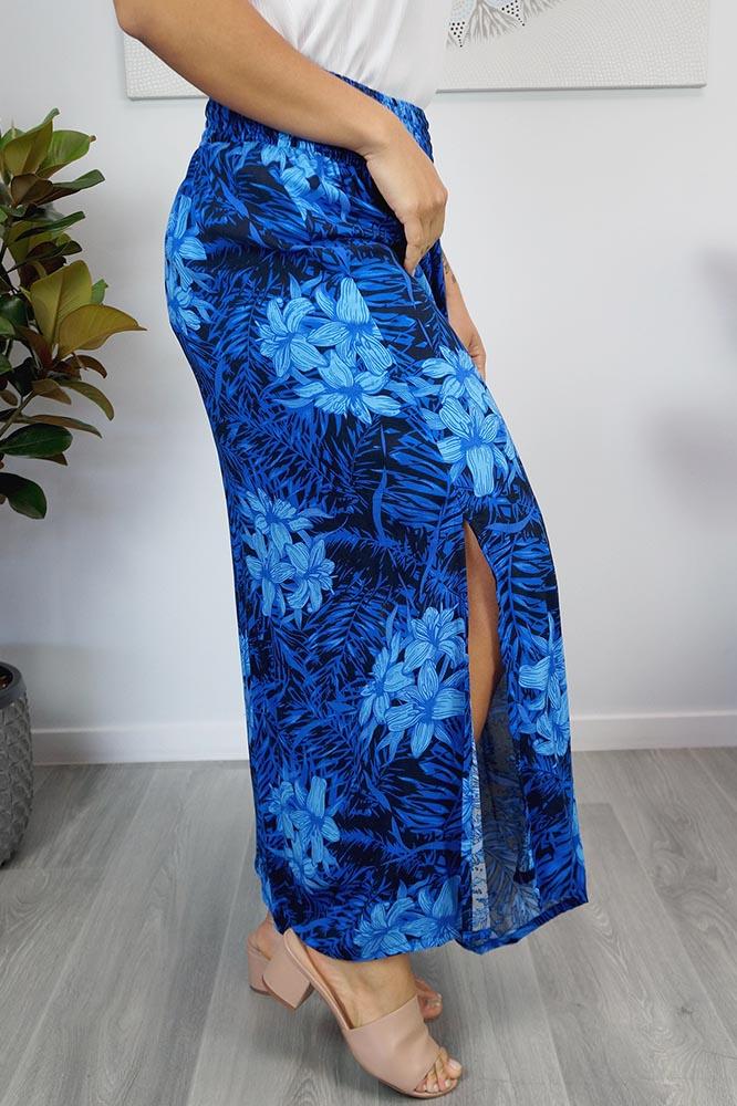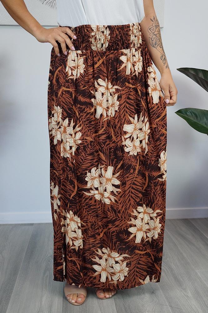 This rayon skirt features an elastic smocking waist, and splits either side. ONE SIZE TO FIT 10-16