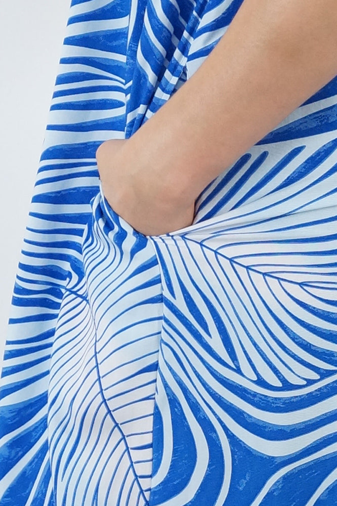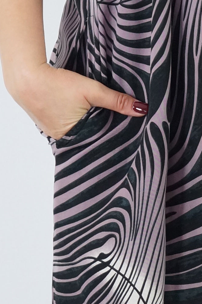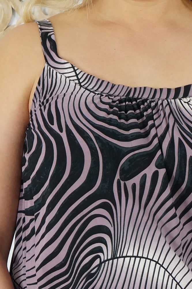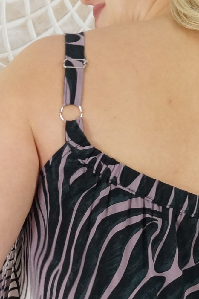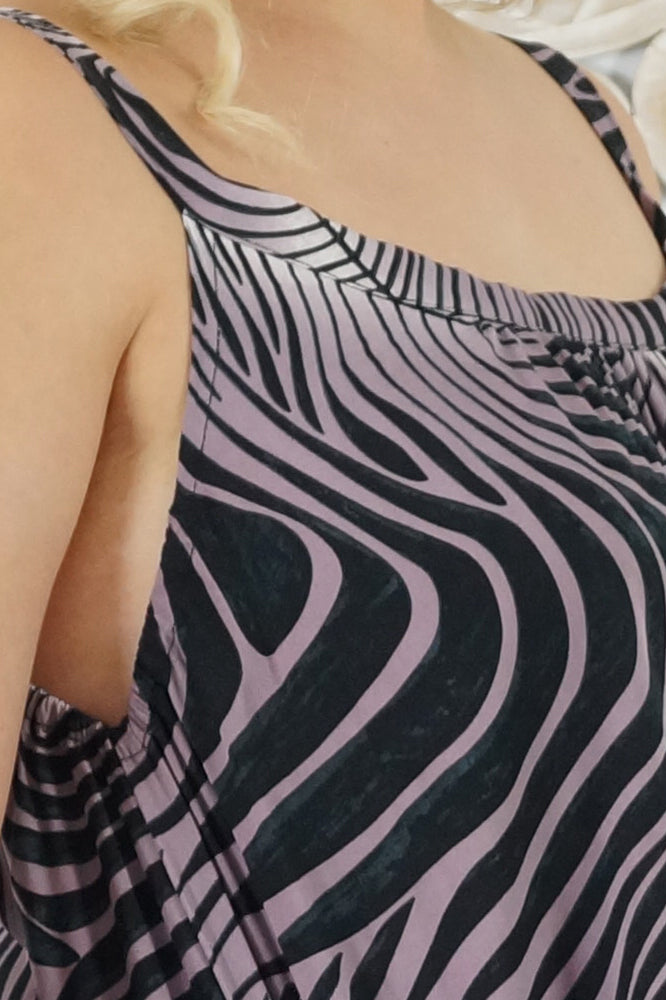 Easy fit mid length dress that falls away from the neckline. Comfortable elastic across the back and adjustable straps.