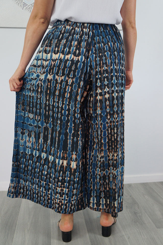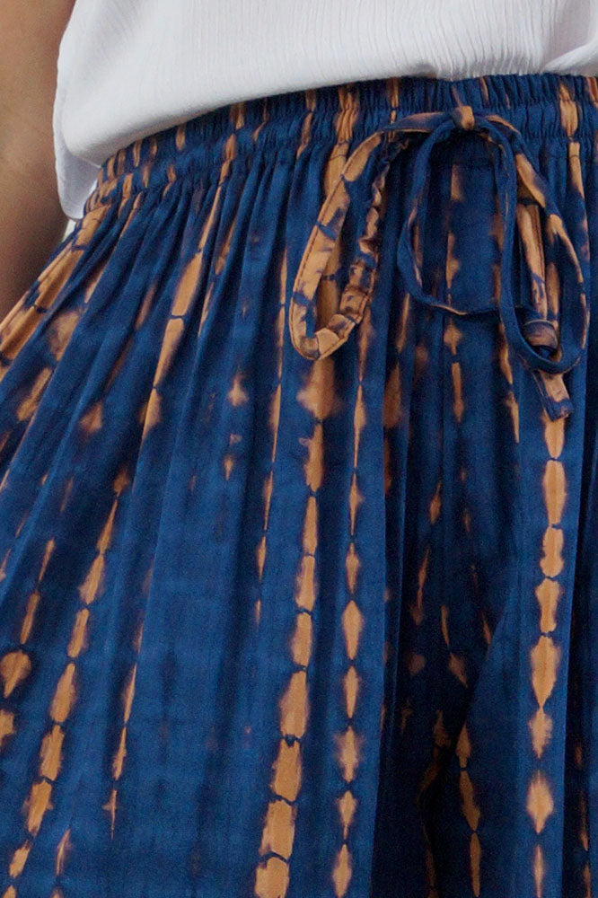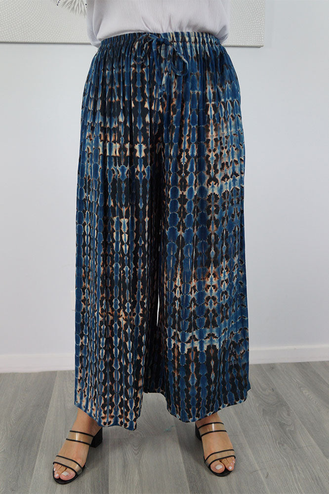 The Cha Cha pant is 100% rayon and one size to fit 10-18. With extra wide flowing legs and elastic waist, this has got to be the most comfortable pant yet.