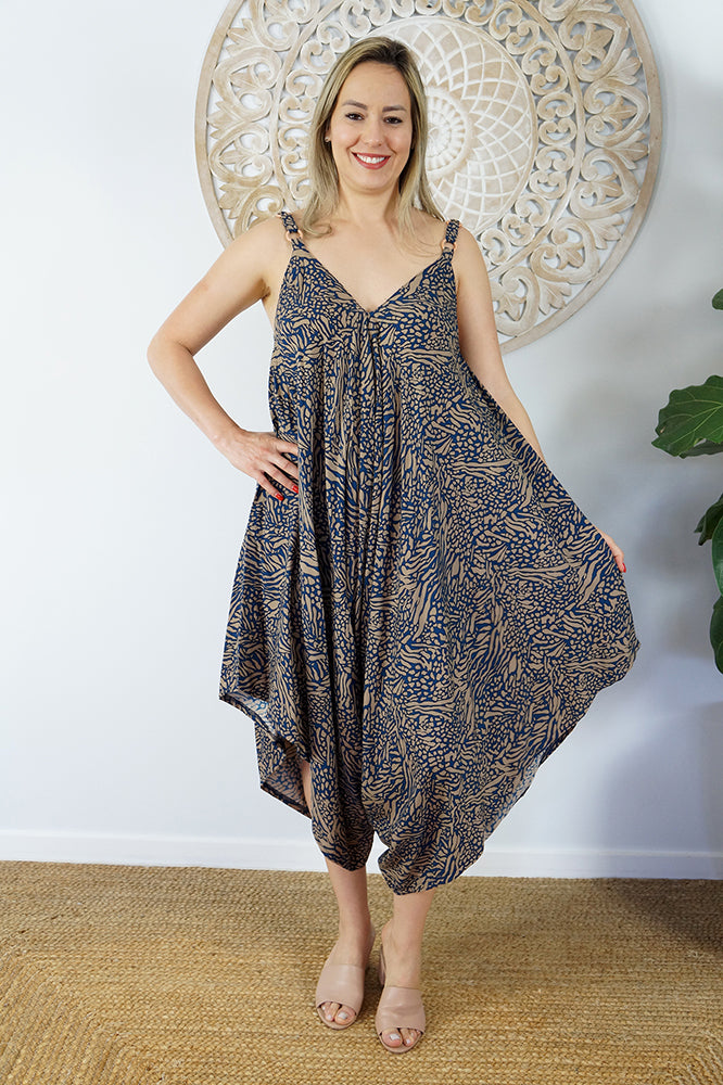 A great piece to add to your summer collection. This clown jumpsuit features adjustable straps V-neck front and back and comfort for those hot summer days. One size to fit 10-16 & XL to fit size 18-22.
