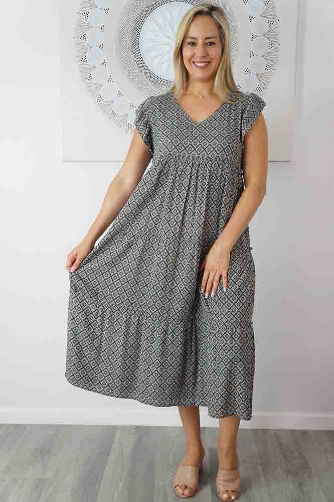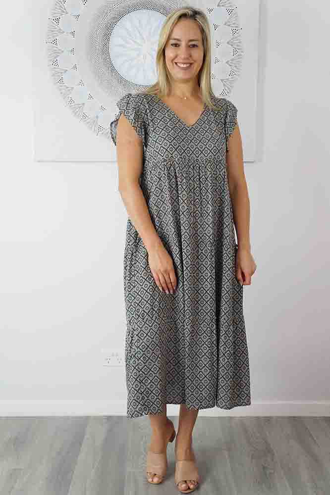 The Costa Rica Dress is a beautiful piece. The free flowing nature and the paneling shape is made elegant with soft and smooth rayon material and frilled capped sleeves makes this an elegant style for the ages.