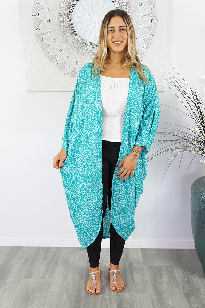 The Long Cape is draped loosely due to the soft cool nature of the rayon fabric. This will make a gorgeous addition to any simple outfit. A definite must have for this summer!