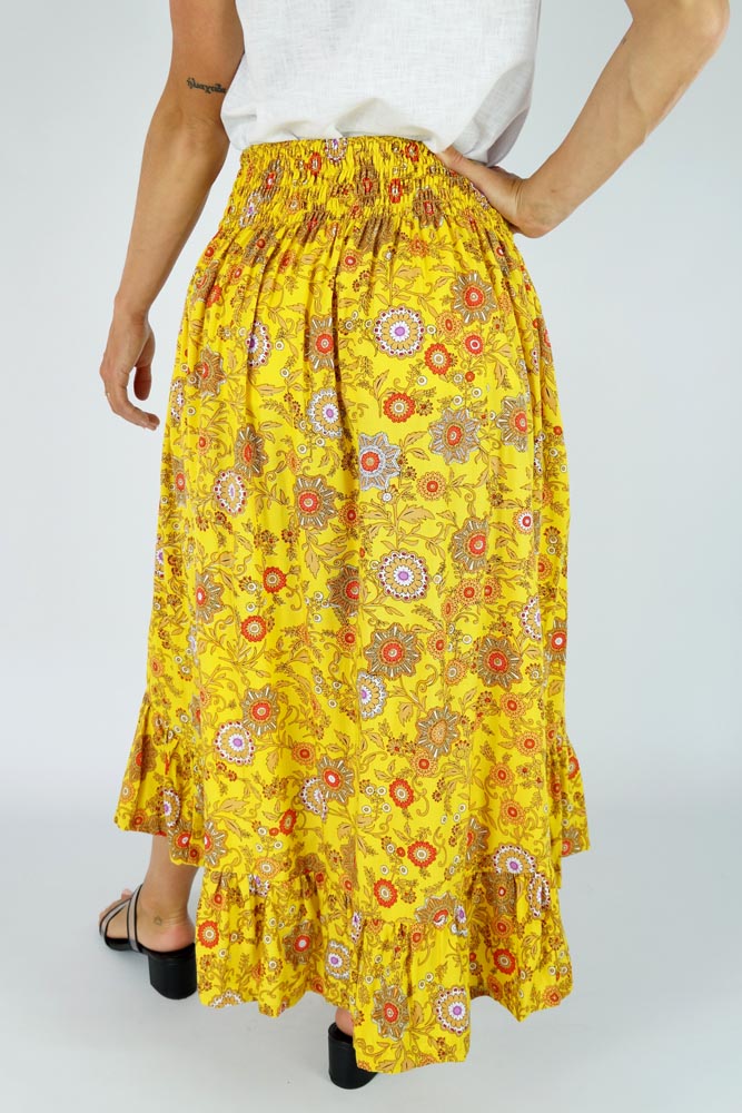 The Tangelo Skirt offers a playful and charming look. Its "hi-low" design gives it a versatile length ideal for both casual outings and dressier occasions.
