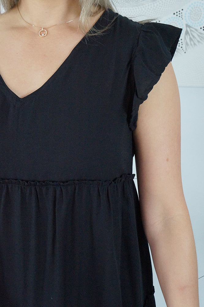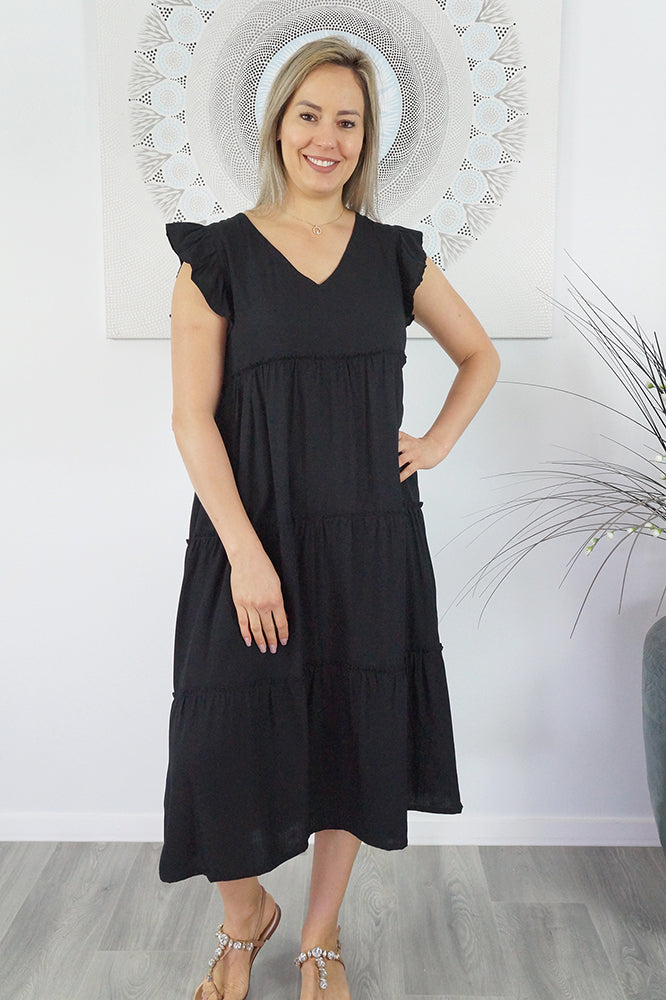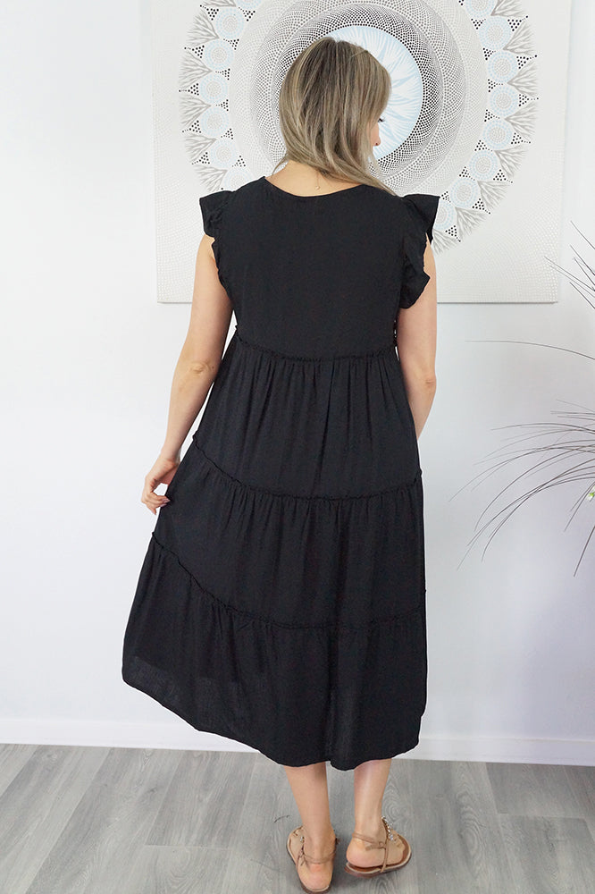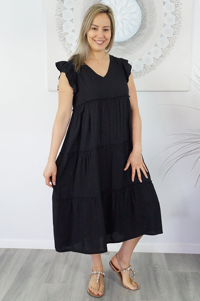 The Costa Rica Dress is a beautiful piece. The free flowing nature and the paneling shape is made elegant with soft and smooth rayon material and frilled capped sleeves makes this an elegant style for the ages.