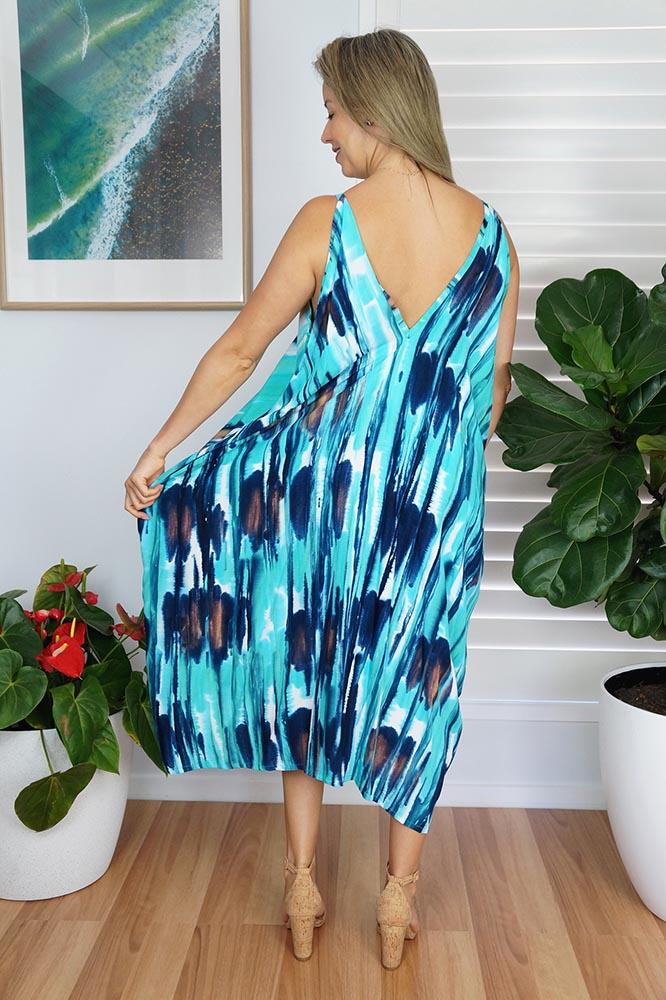 Featuring a V neckline front & back, elastic easements under the arms which ensures an comfortable fit. Side pockets and a handkerchief styled hemming to suit any body shape.