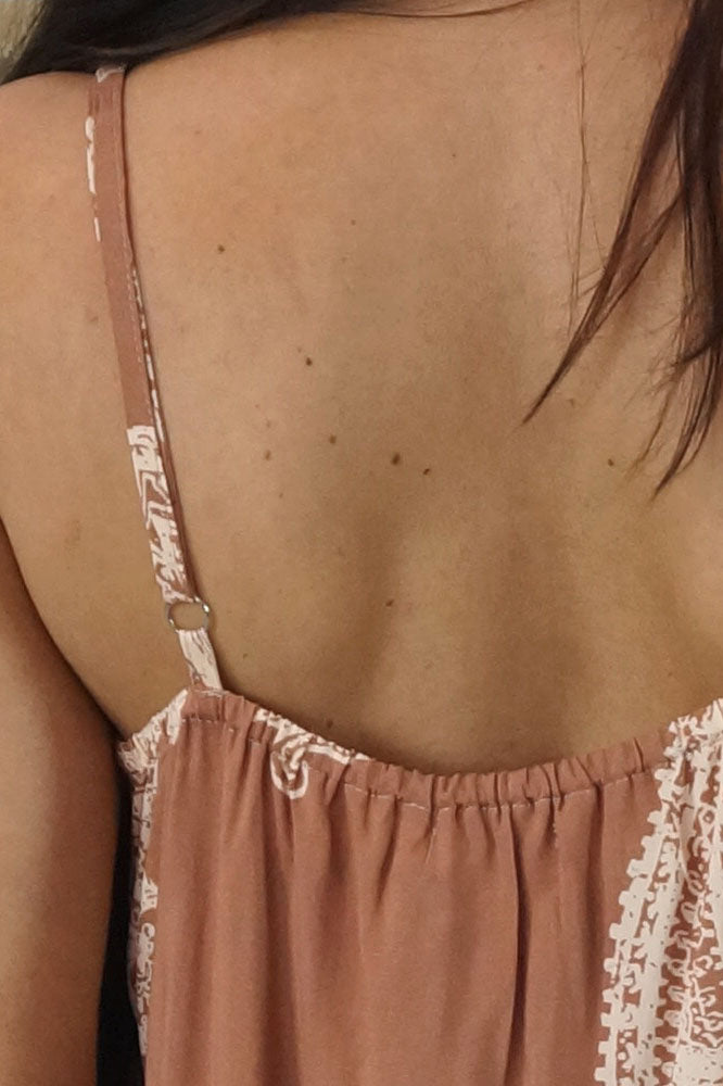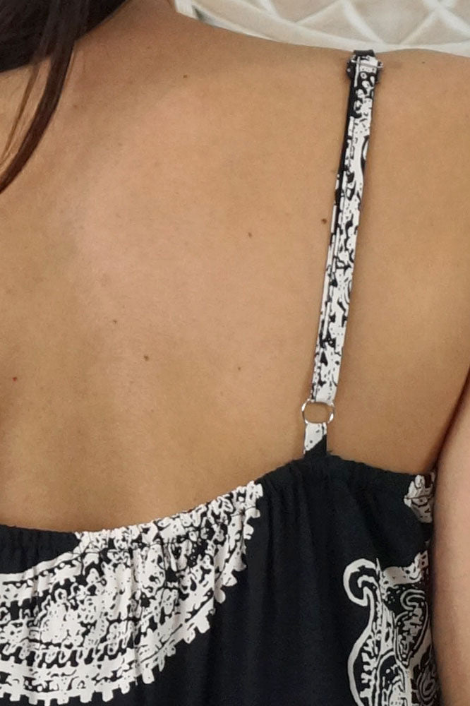 The Folly Dress is an easy fitting sundress. The adjustable straps and the elastic in the back make the Folly Dress flexible to fit your body. Pair with a pair of heels or a pair of sandals for a day in the sun.