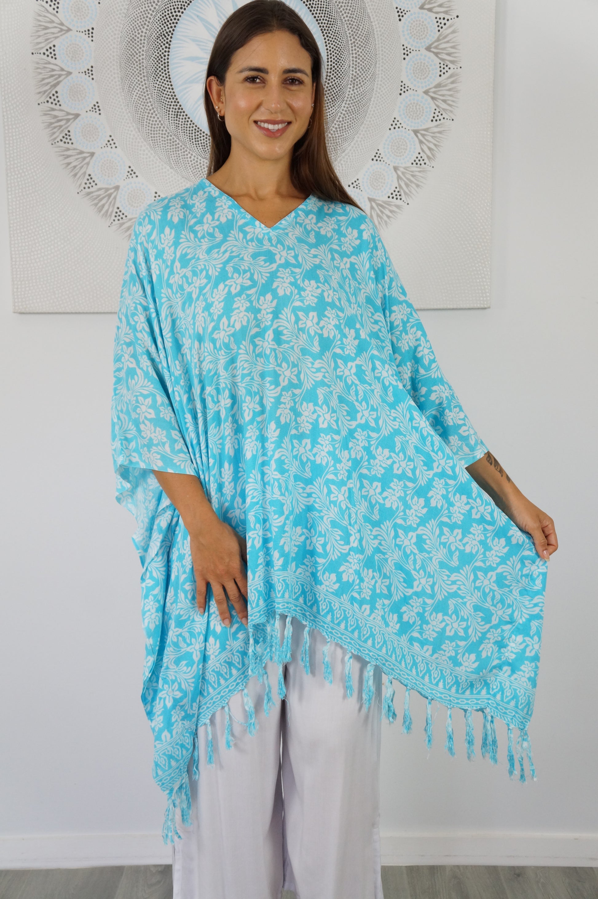 All Kaftan/Cover Ups/Short Tunics are Free Size and will fit a size 10 up to a size 26.