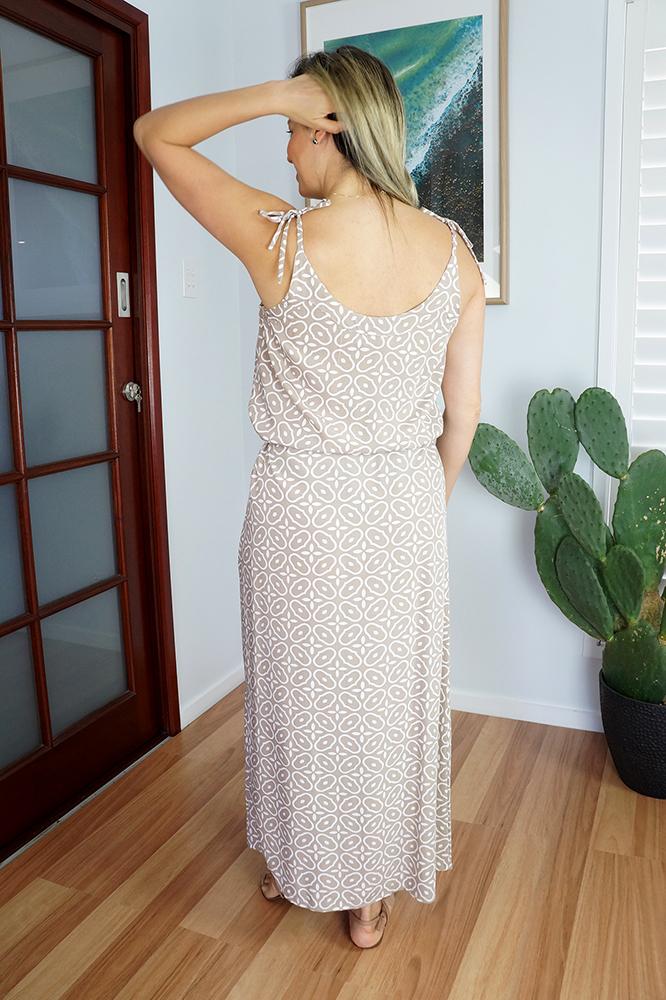 With tie up straps to create an easy fit, our Intuition Dress also features a front split and adjustable tie waist.