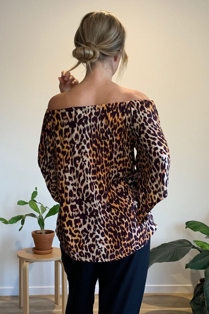Made from crinkle rayon, featuring elastic around the neck line for an on or off the shoulder look along with angled split sleeves.