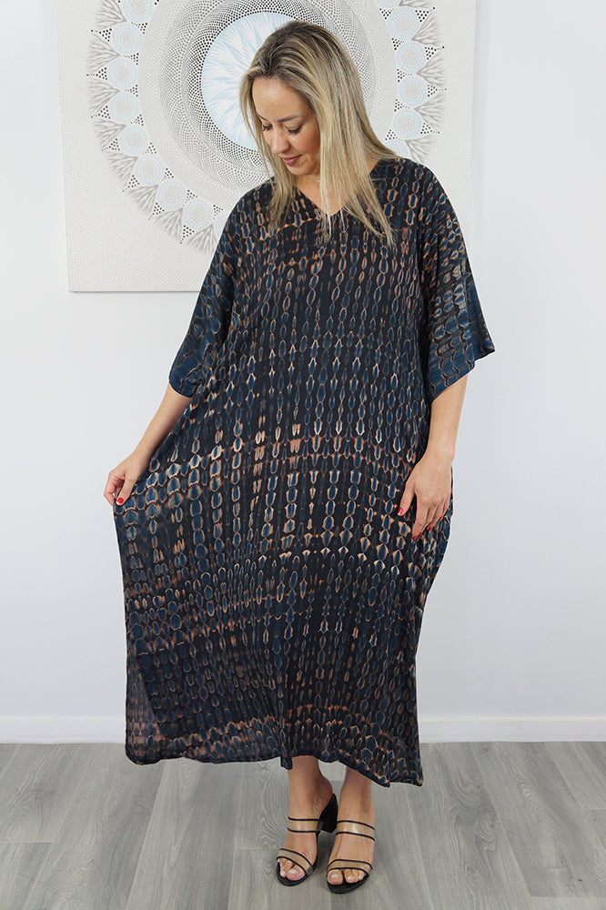 Our kaftans range from rich solid colors to funky patterns. A simple v-neck in the front, side splits on the bottom and a free size from 10-26, this product fits everyone (seriously, these fit everyone).