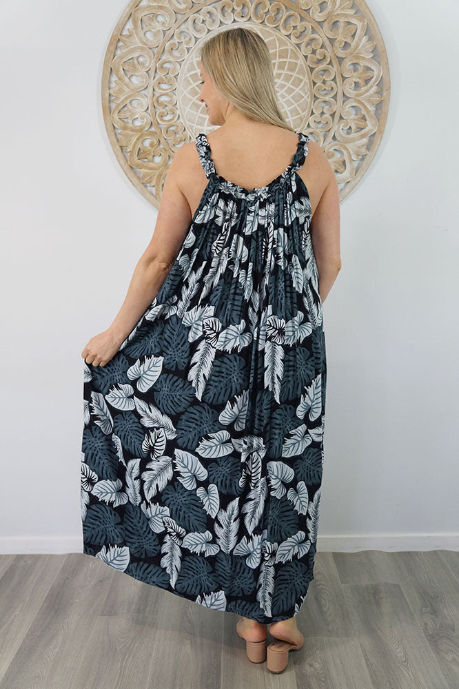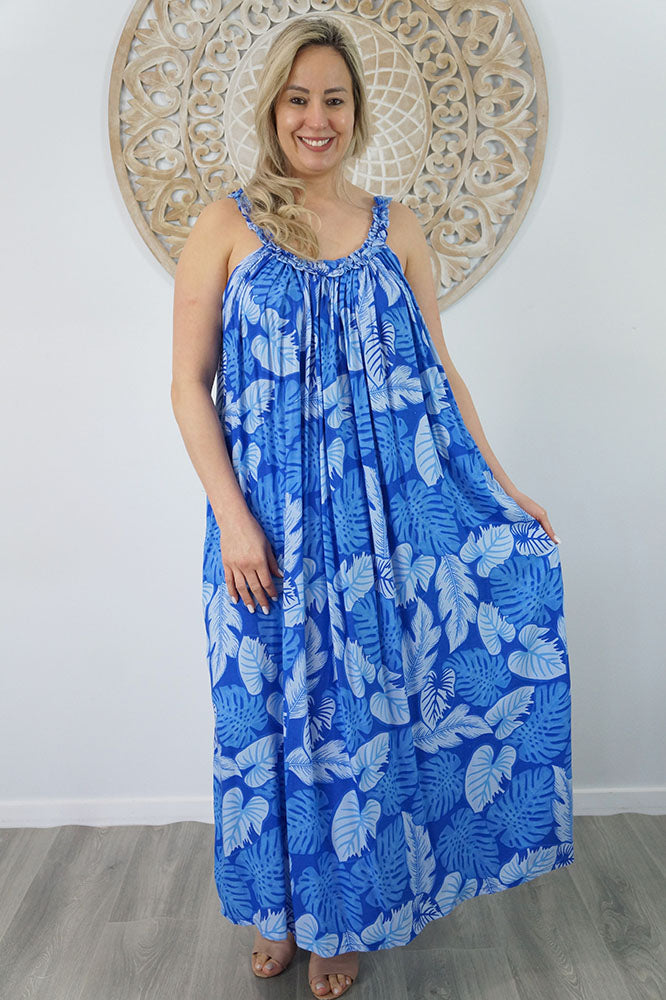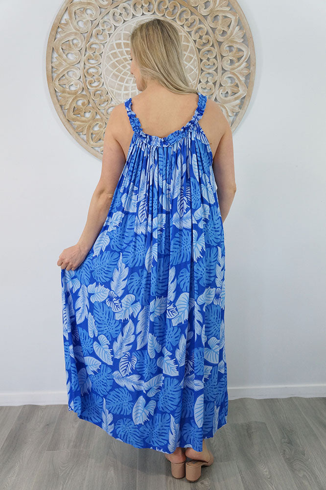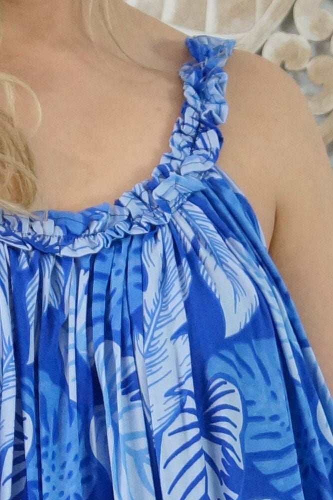 Made from a cool printed rayon, with a stylish frilled neckline.