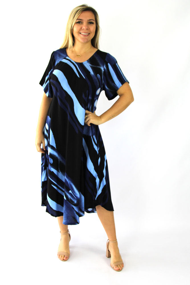 Cool and comfortable sleeved dress in lovely pre shrunk crinkle rayon.