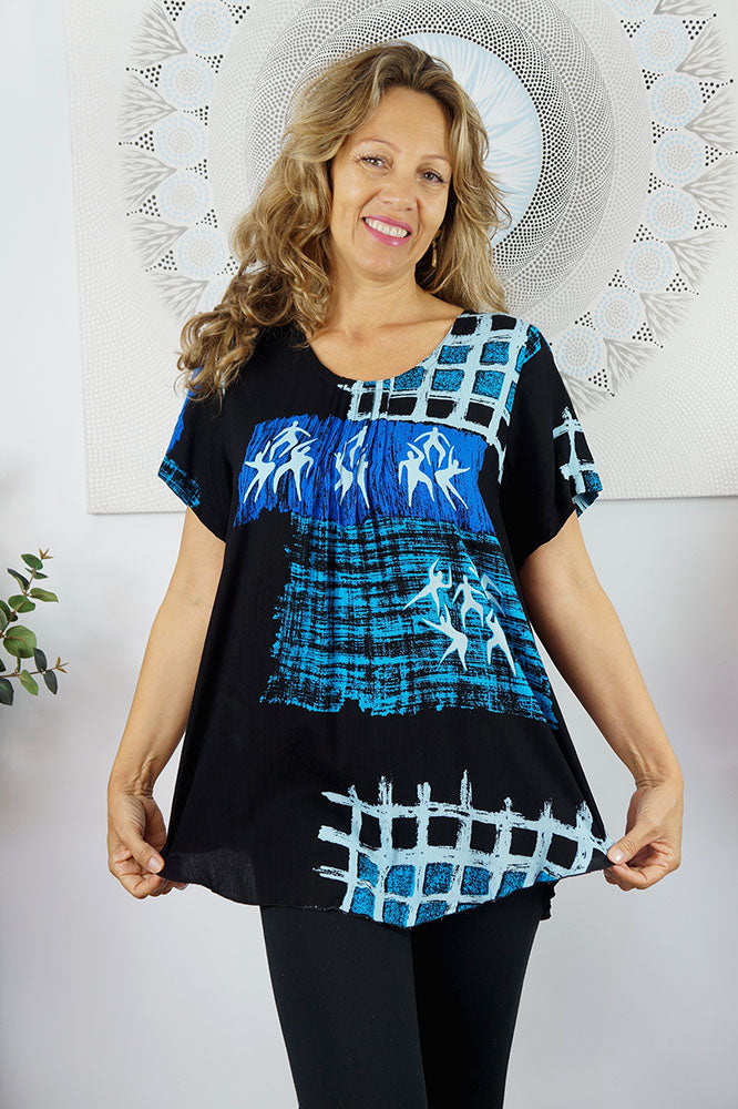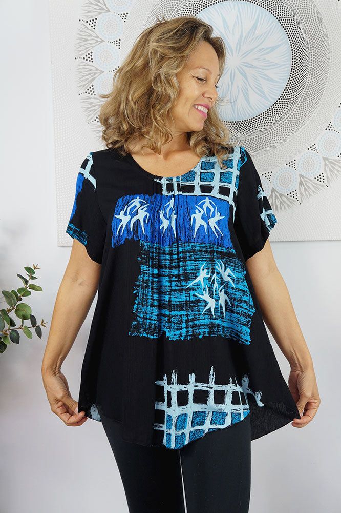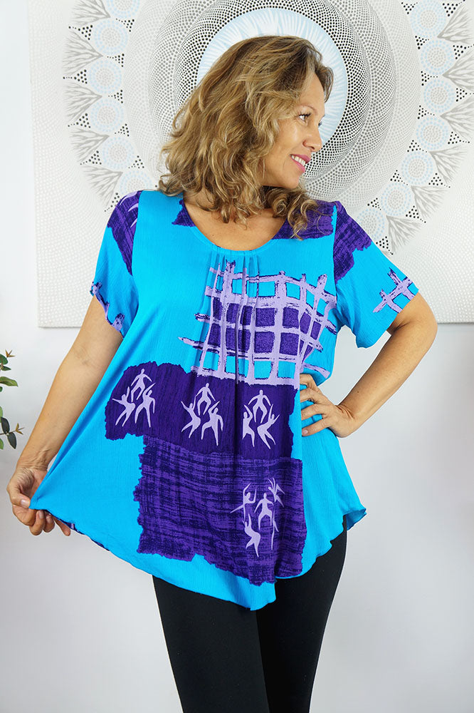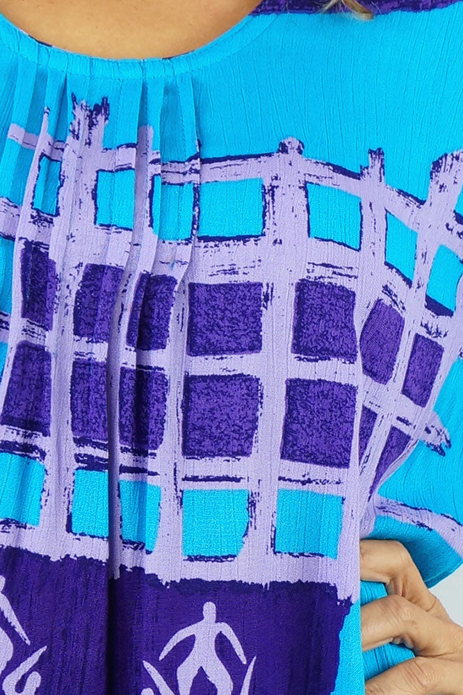 A flowy top with sleeves made from a cool crinkle rayon for those hot summer days. Sizes available 10-16, 18-22