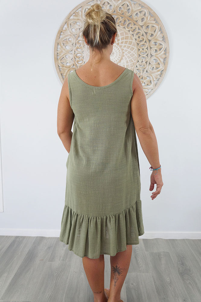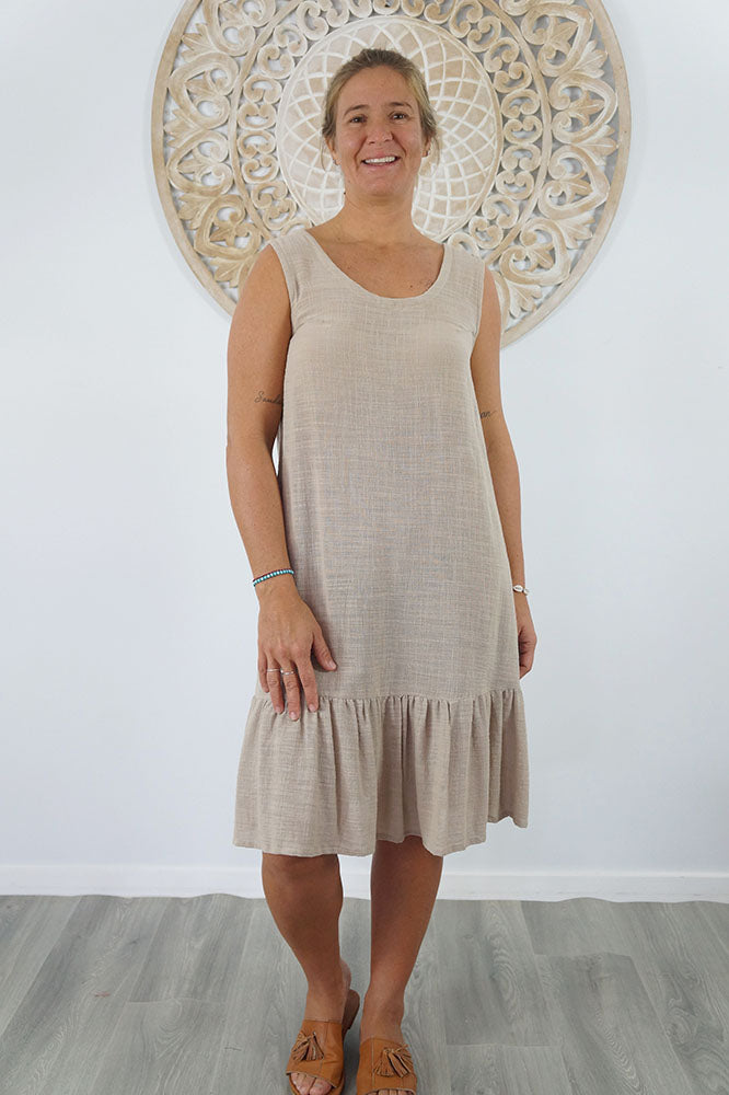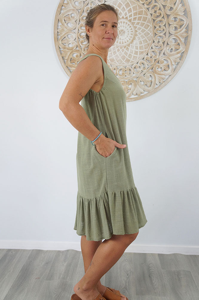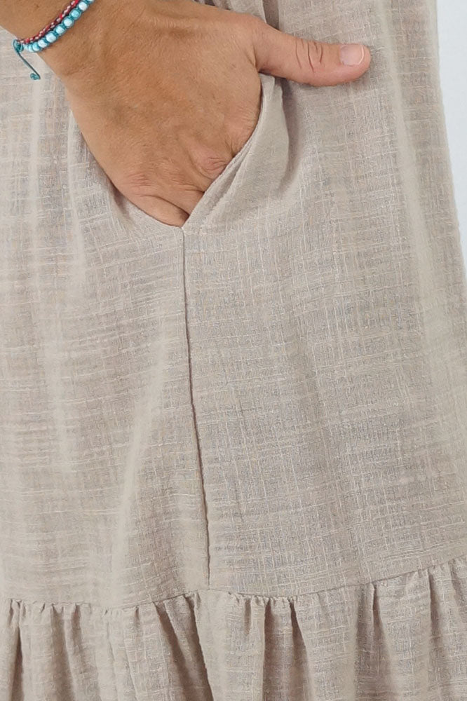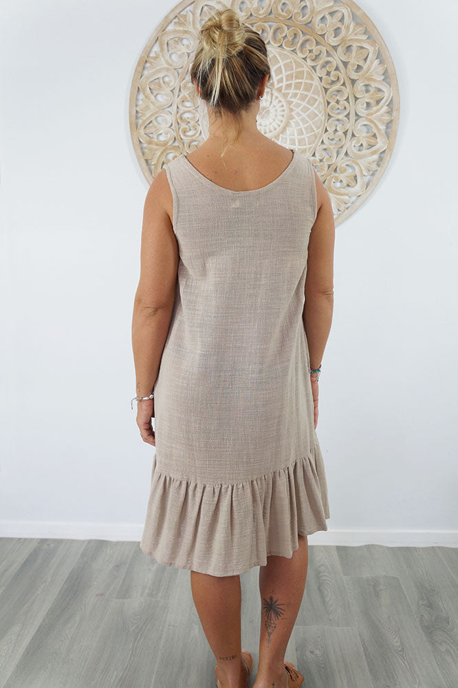 Crafted with the lightness of cotton, this dress offers a refreshing twist on the traditional resort attire.