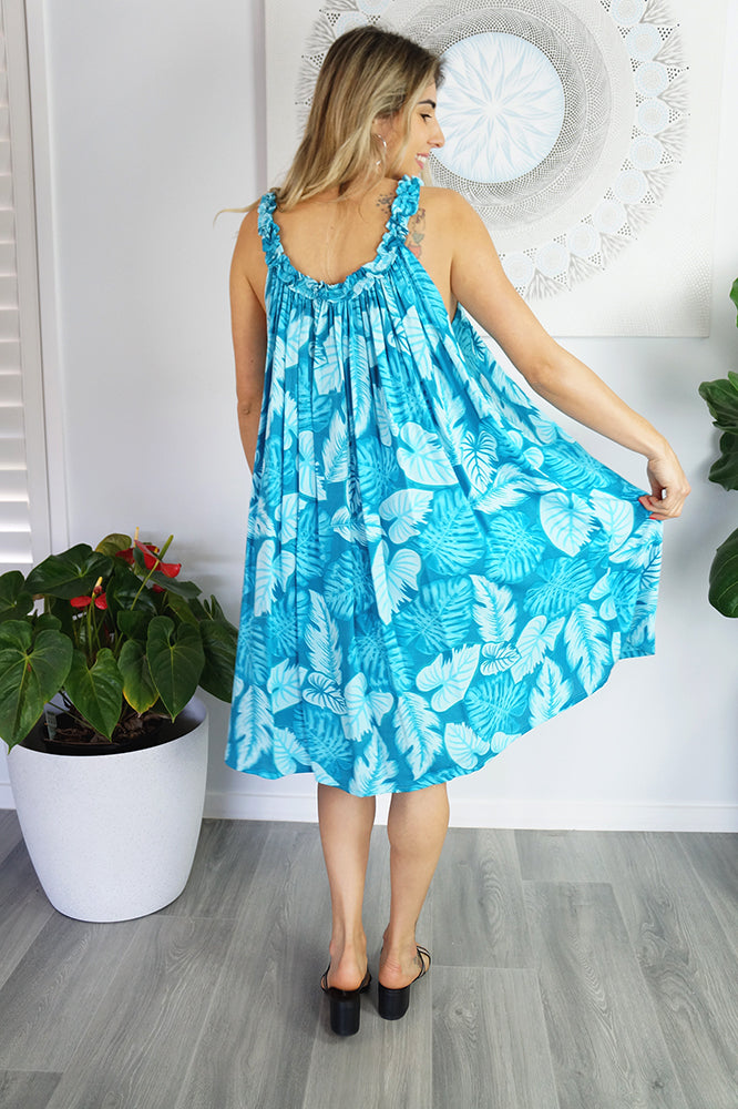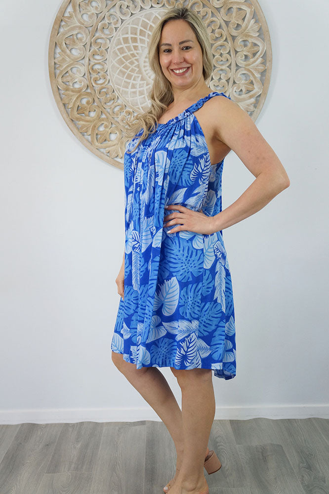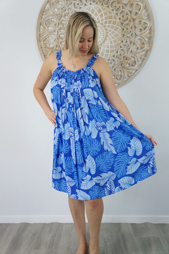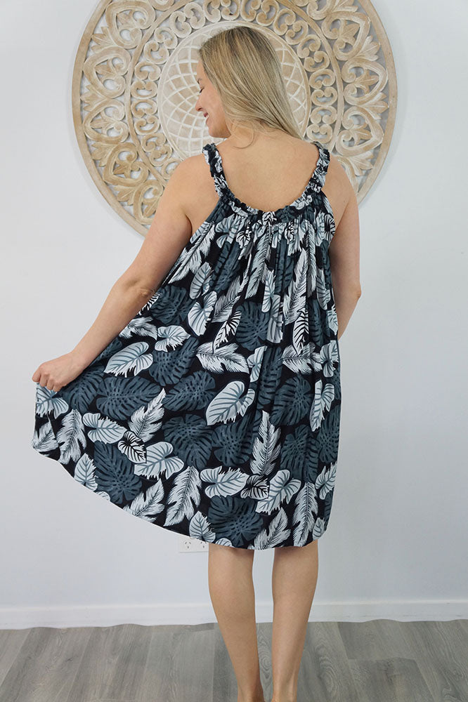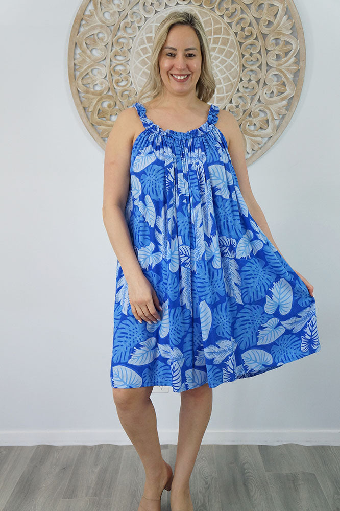 Made from a cool printed rayon, with a stylish frilled neckline.