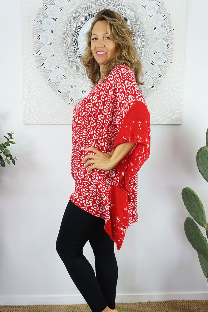 A comfortable way of relaxing around the pool or on the beach, this all rayon tunic is suitable for sizes 10 to 26.