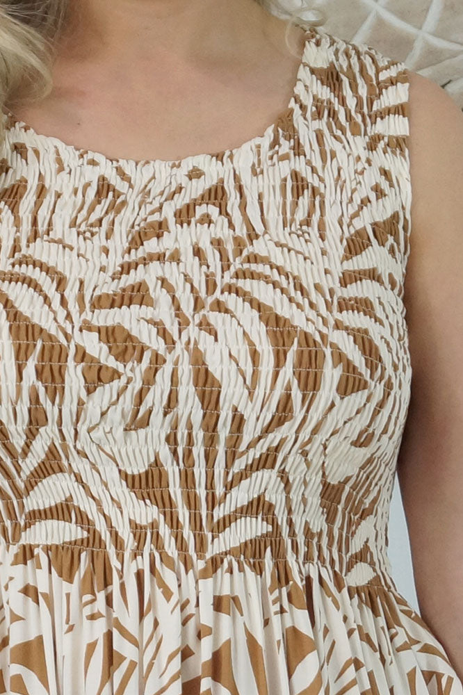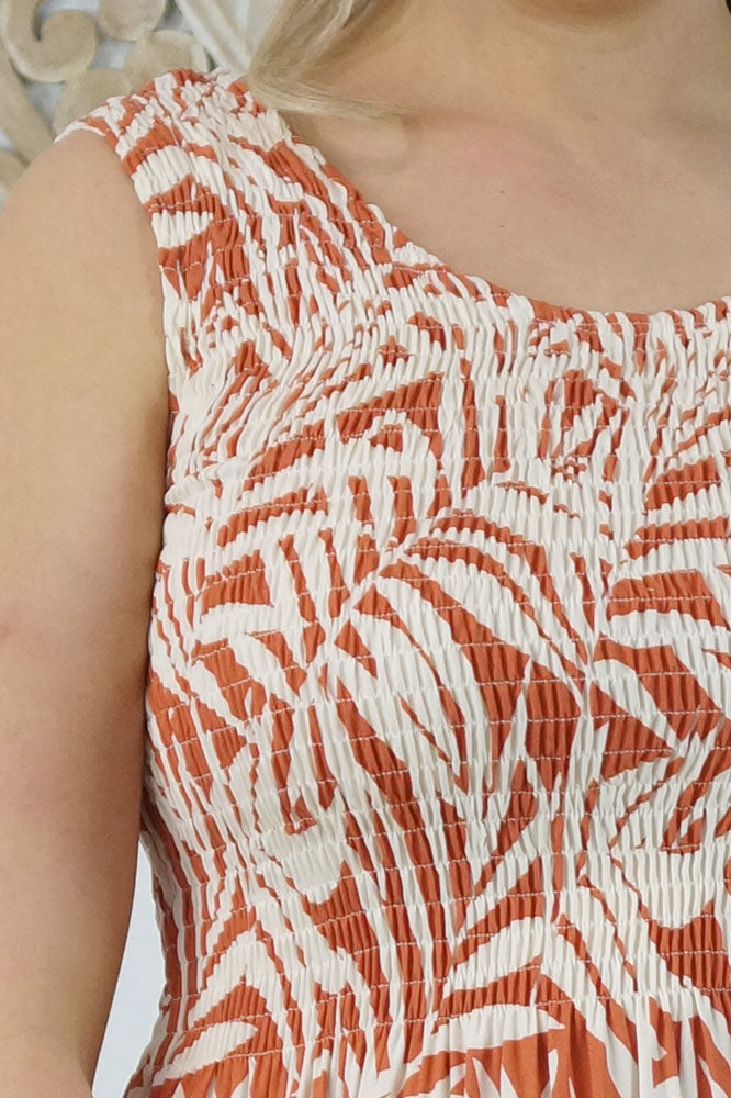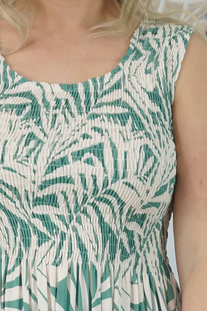Singlet smock dress. Shirring across back and front. To suit most sizes 8-18. Lovely and cool rayon fabric.