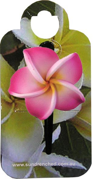 3cm frangipani hairpin. Available in 3 fantastic colours, makes a great gift.