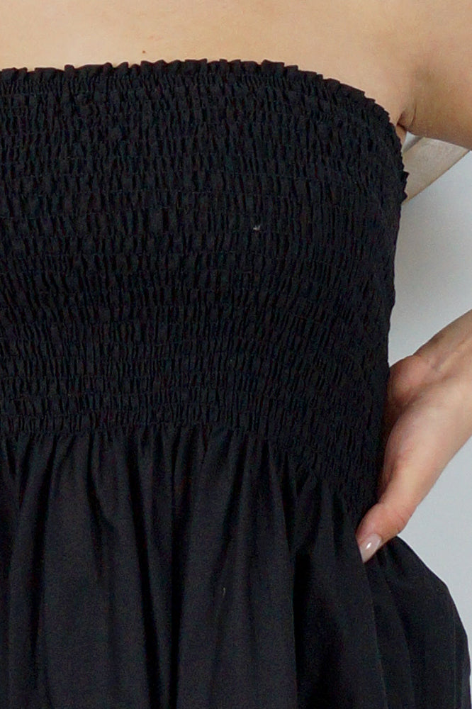 A simple 100% summer dress with extra elastic shirring for comfort.