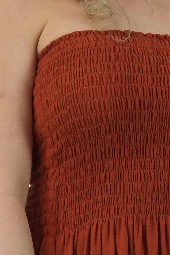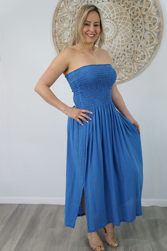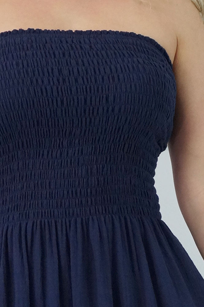 This strapless design features delicate shirring around the bust for a flattering fit, while its relaxed silhouette and breathable cotton fabric keep you cool and comfortable all day.