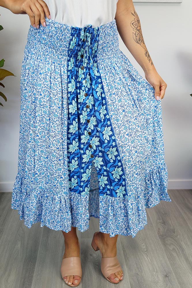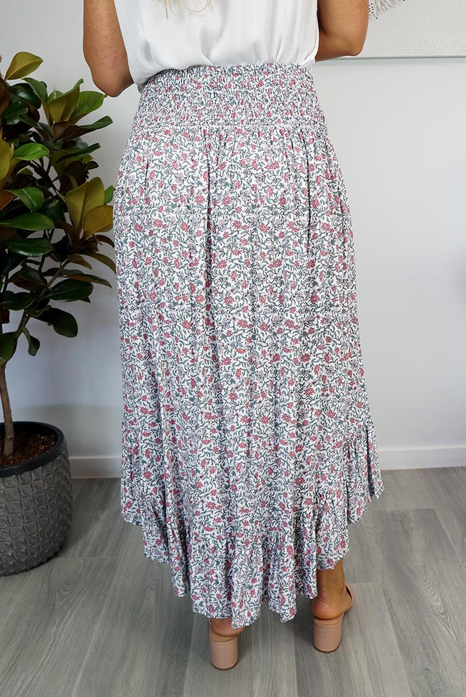 The Tangelo Skirt offers a playful and charming look. Its "hi-low" design gives it a versatile length ideal for both casual outings and dressier occasions.