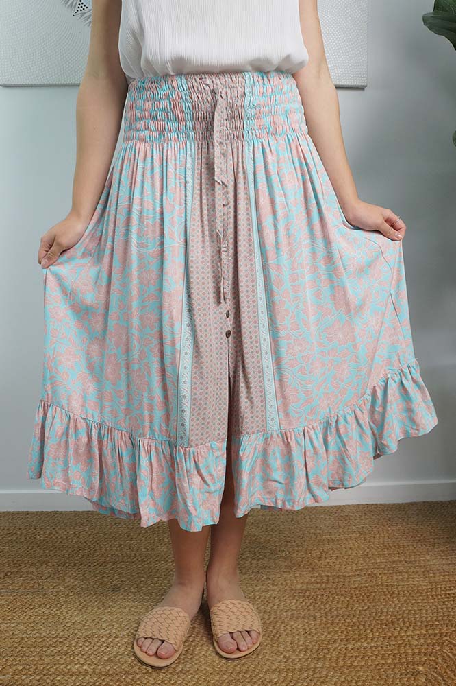 The Tangelo Skirt offers a playful and charming look. Its "hi-low" design gives it a versatile length ideal for both casual outings and dressier occasions.
