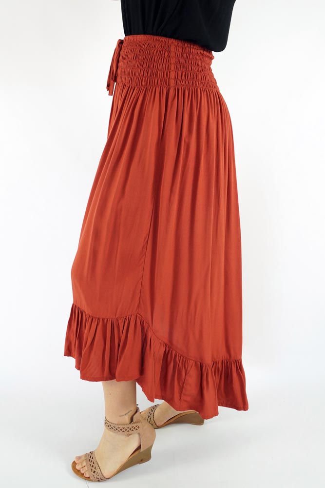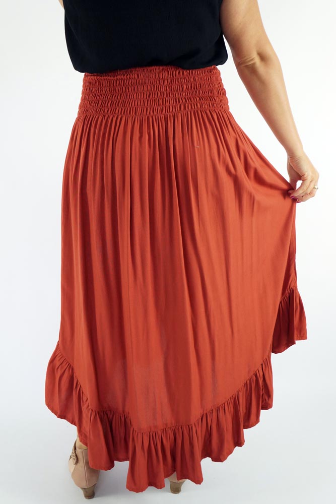 The Tangelo Skirt offers a playful and charming look. Its "hi-low" design gives it a versatile length ideal for both casual outings and dressier occasions.