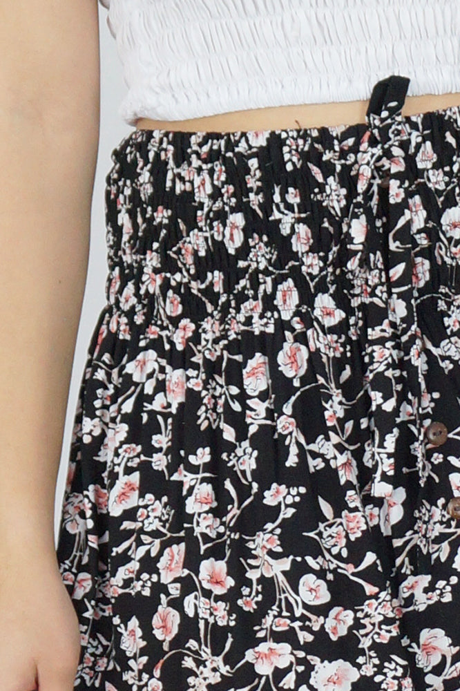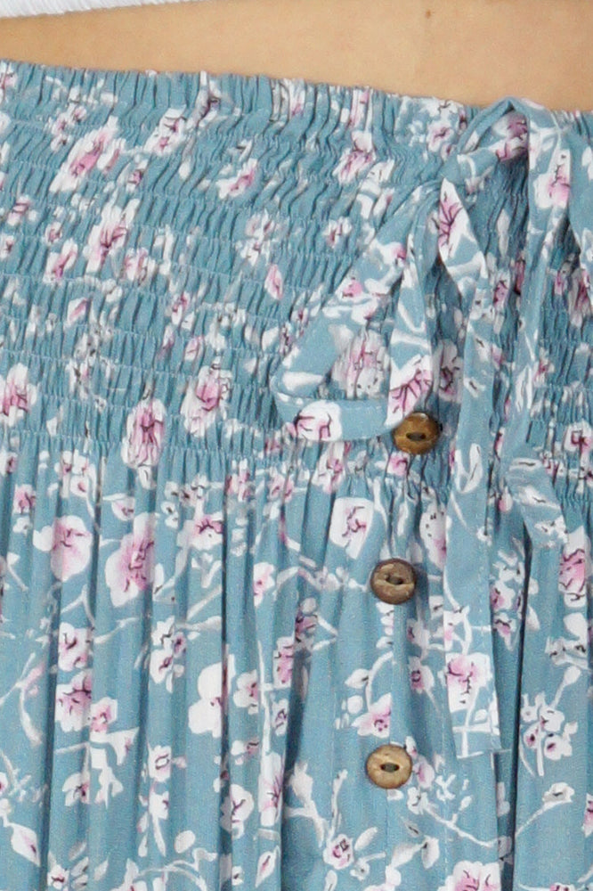 The elastic smocked waistband provides a comfortable fit that accommodates sizes 8 to 16 with ease.