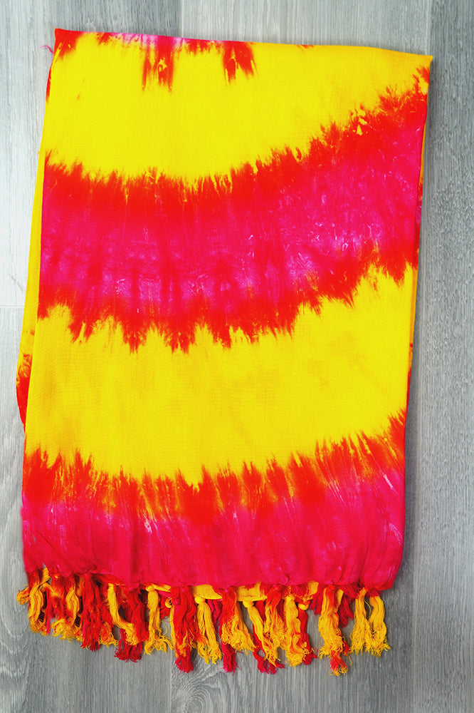 These "Tie Dye" Spiral sarongs are a great cover up for a day at the beach, pool, lake or wherever else your heart desires. Sarong measures approximately 1.8M x 1.15M on fringed lightweight rayon.