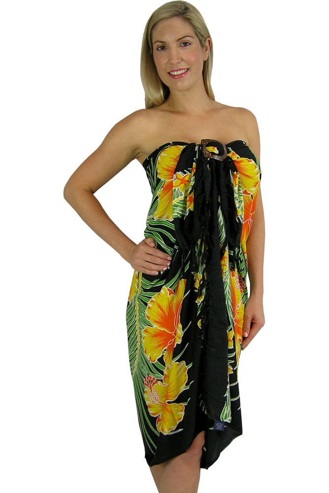 These "Waikiki" Hawaiian print sarongs are a great cover up for a day at the beach, pool, lake or wherever else your heart desires. Sarong measures approximately 1.8M x 1.15M on fringed lightweight rayon.