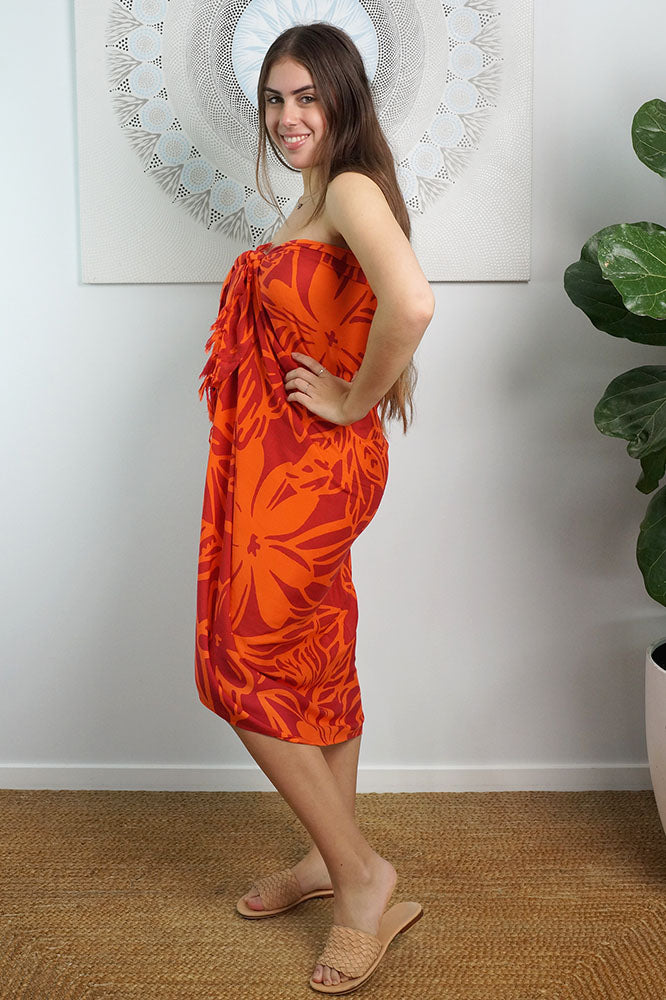 These "Rarotonga" inspired printed sarongs are a great cover up for a day at the beach, pool, lake or wherever else your heart desires. Sarong measures approximately 2.2M x 1.15M on fringed lightweight rayon.